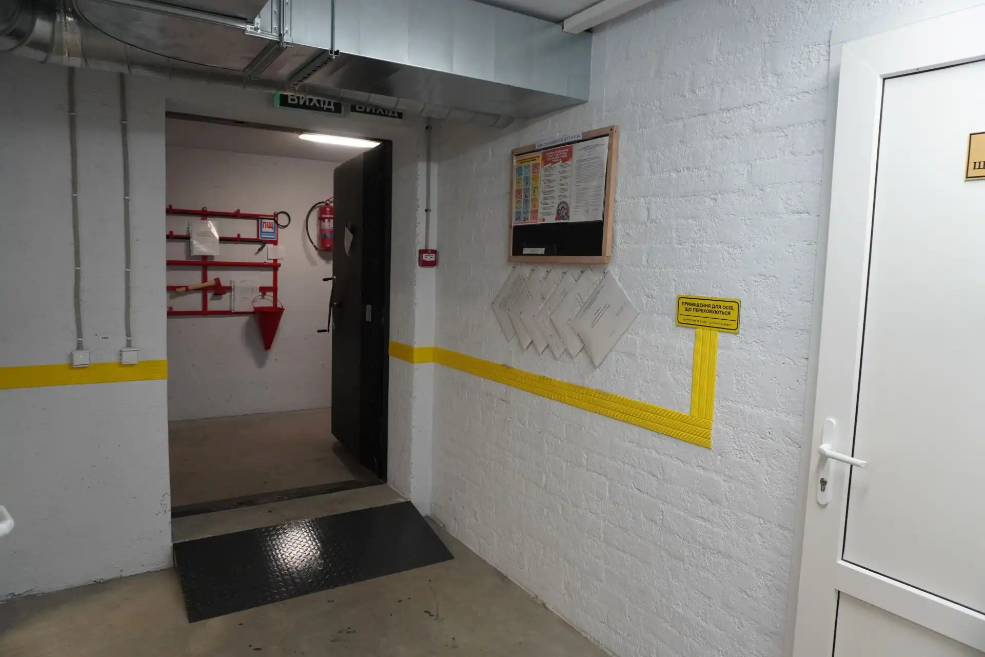 Виходи: Приміщення має 2 незалежні виходи, що відповідає нормам ДБН В.2.2-5:2023 щодо захисних споруд.