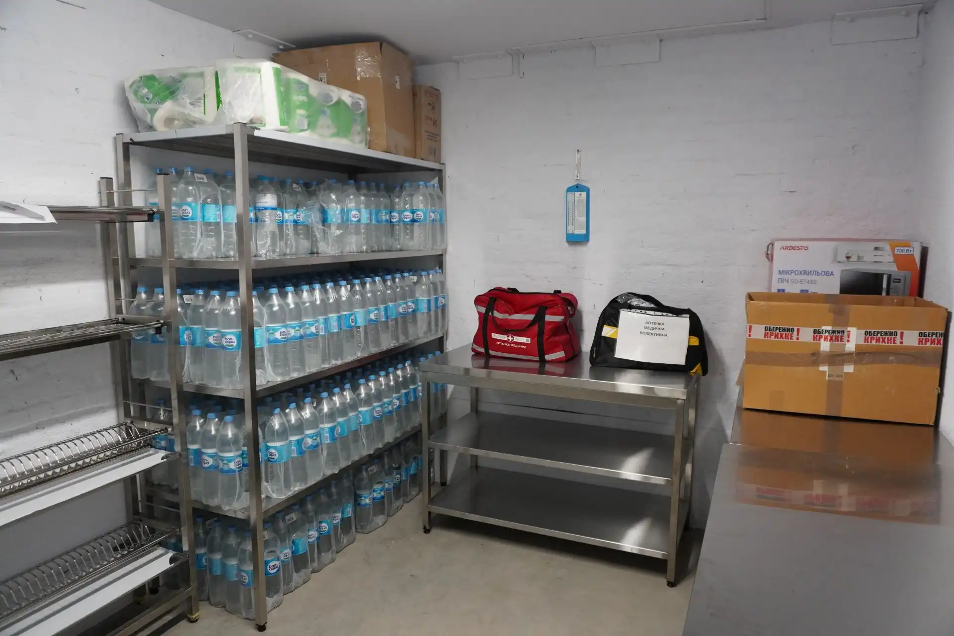 Цифрова доступність: в укритті працює високошвидкісний оптично-волоконний інтернет, мережеві комутатори та Wi-Fi репітери. Це дозволяє використовувати гаджети для навчання та тримати зв’язок із батьками.